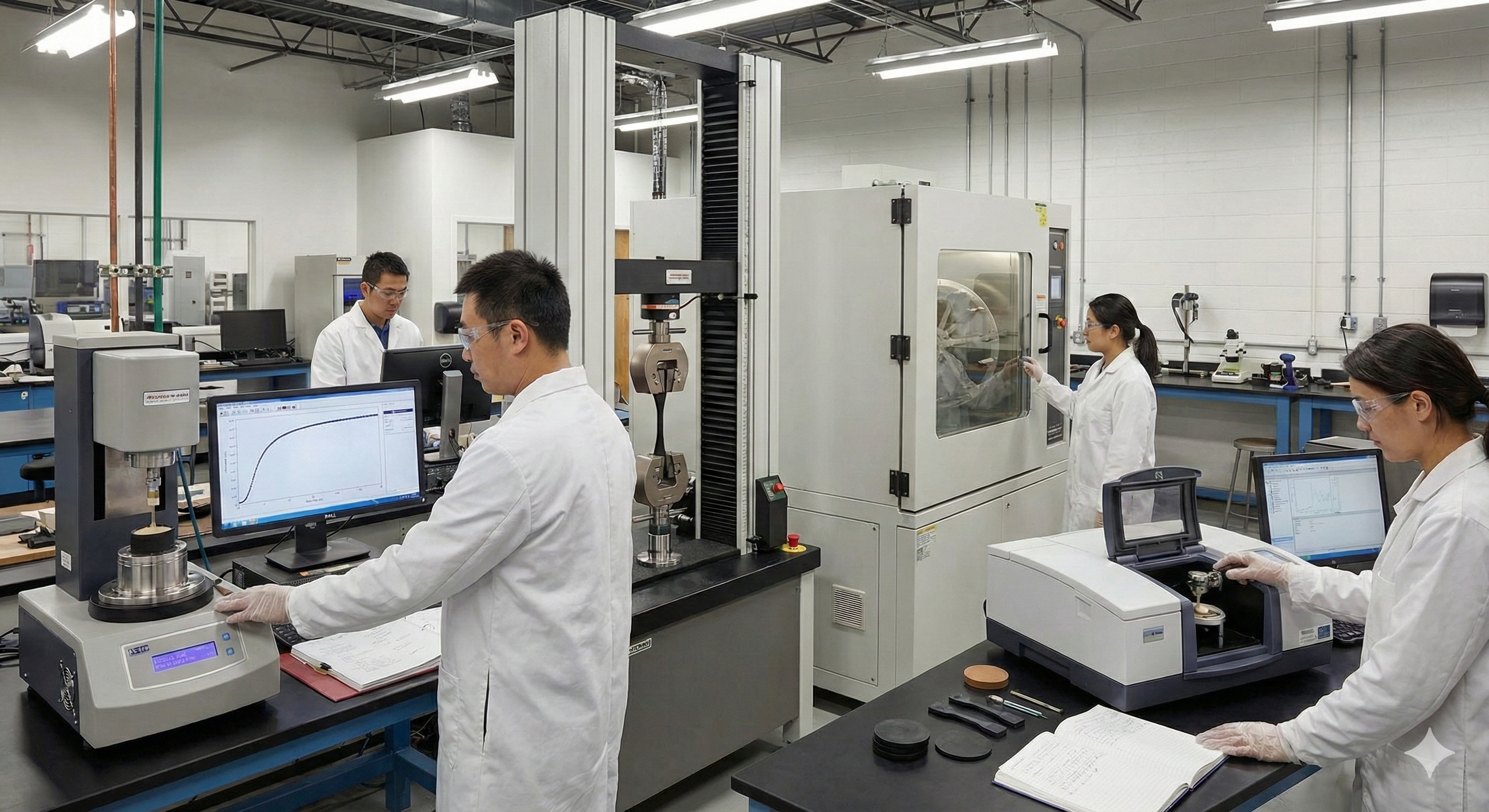 The equipment includes: Shore hardness tester, specific gravity meter, tensile testing machine, rheometer, ozone aging tester, low-temperature brittleness tester, oil resistance tester, thermal aging tester, etc.